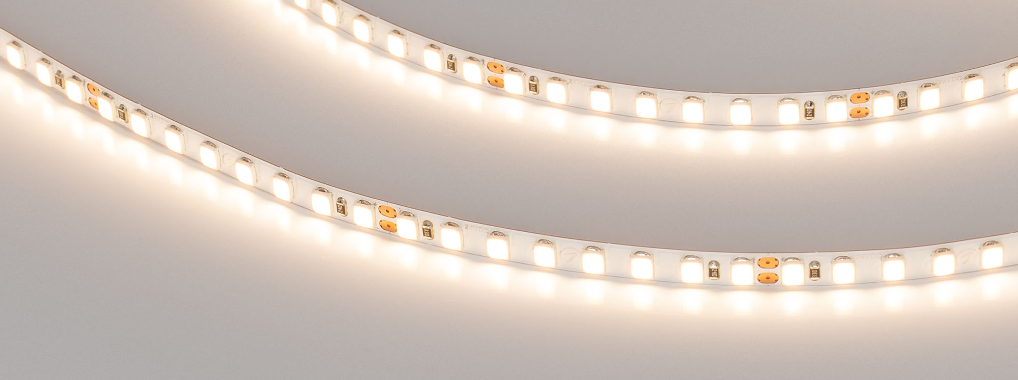 Светодиодная узкая лента RT серии A160 . Светодиоды SMD 2835, 160 шт/м, белая плата шириной 5 мм, скотч 3M. Цвет ТЕПЛЫЙ 3500K, индекс цветопередачи CRI>95, угол 120°. Питание 24 В, мощность 15 Вт/м (75 Вт на 5 м). Размеры 5000x5x1.5 мм. Мин. отрезок 50 мм, 8 светодиодов. Цена за 1 м. Обязательна установка на профиль.