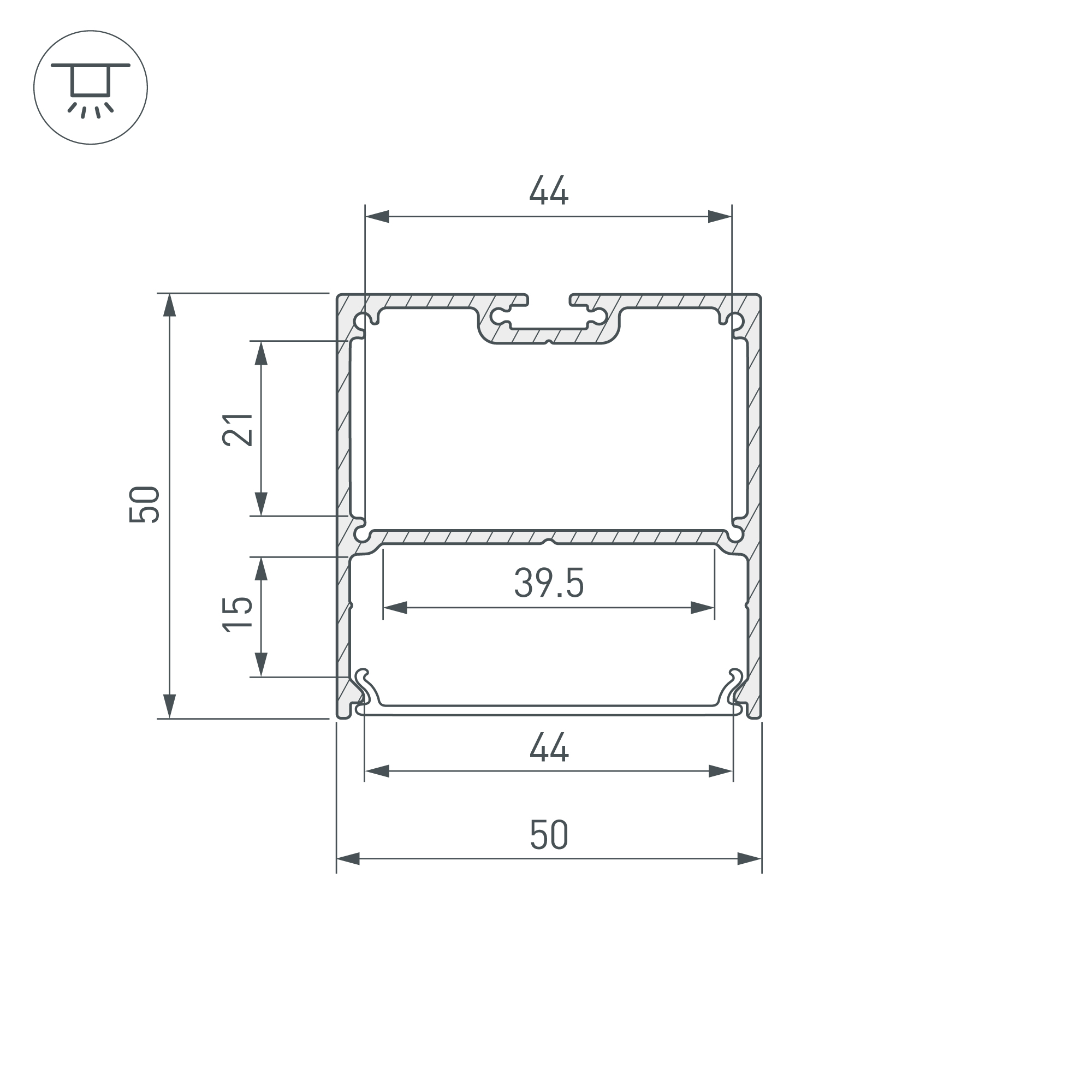 Алюминиевый профиль для светодиодных лент и линеек. Цвет - белый (порошковая окраска RAL9003), поверхность - зернистая. Габаритные размеры (L×W×H): 2000x50x50 мм. Ширина площадки для ленты 39,5 мм. Отсек для БП 44х21 мм. Экраны, заглушки и другие аксессуары приобретаются отдельно. Цена за 1 метр.
