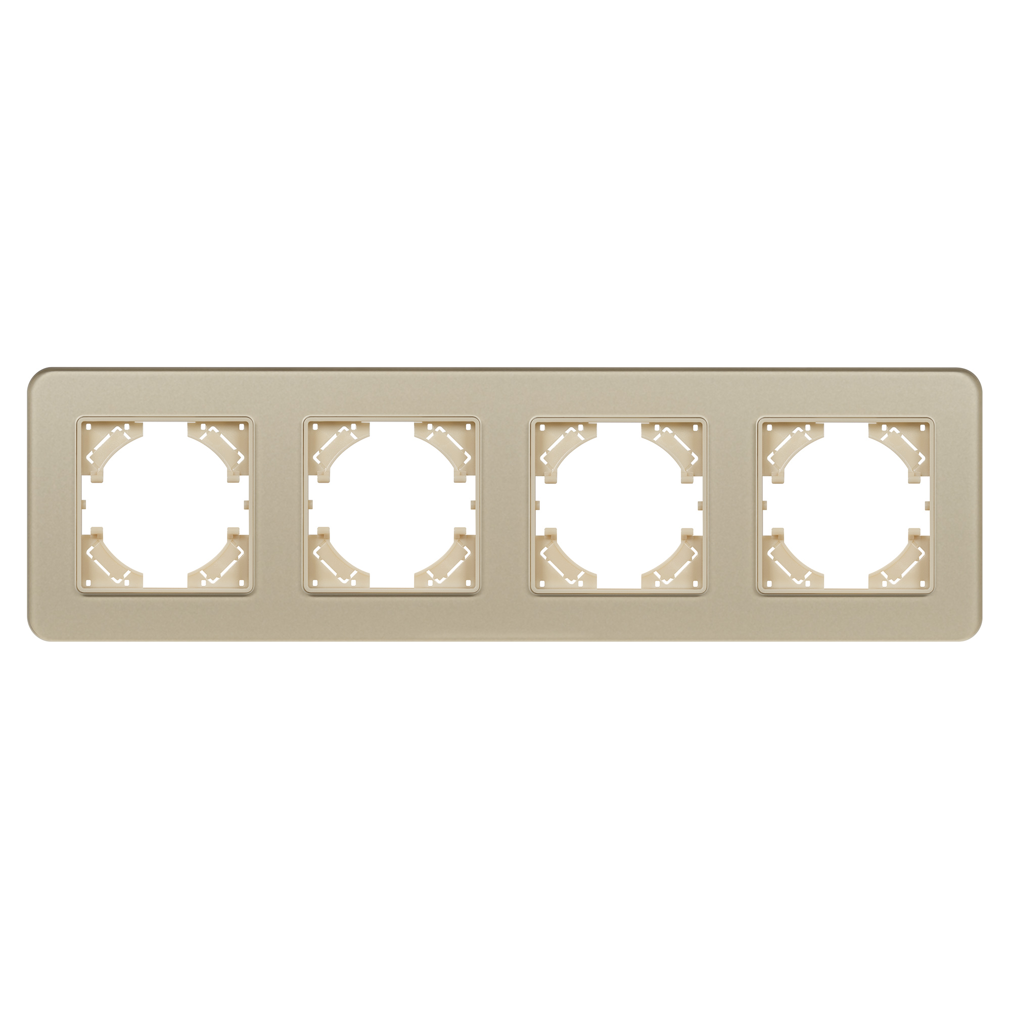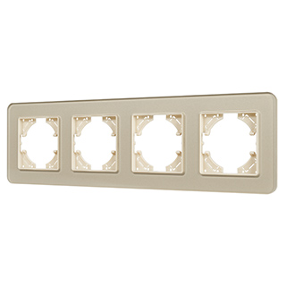 Рамка стеклянная на 4 поста, под встраиваемый механизм. Цвет - золотой с Soft-Touch покрытием. Среднего уровня герметичности IP20. Ориентация монтажа - горизонтальная (основным ориентиром служат посадочные выступы для накладки механизма).